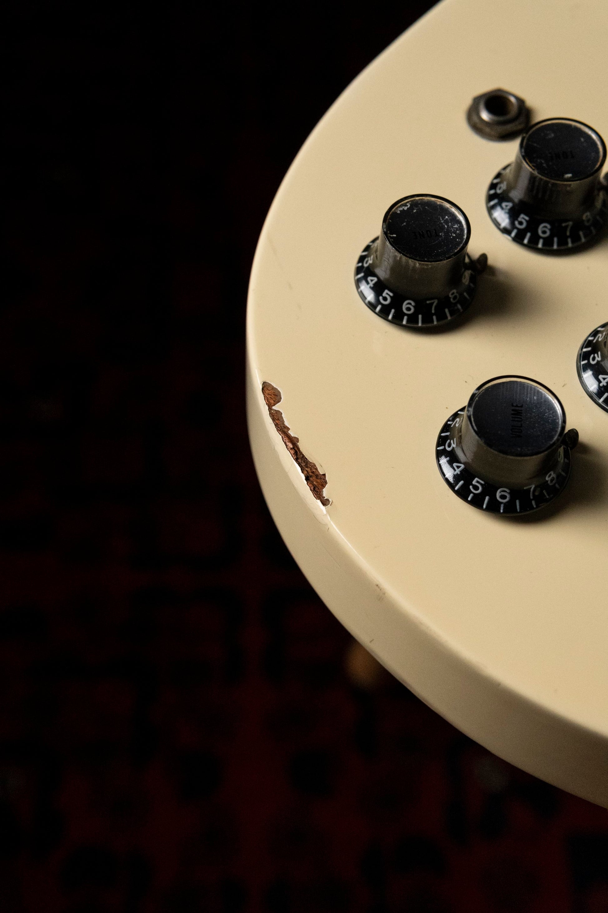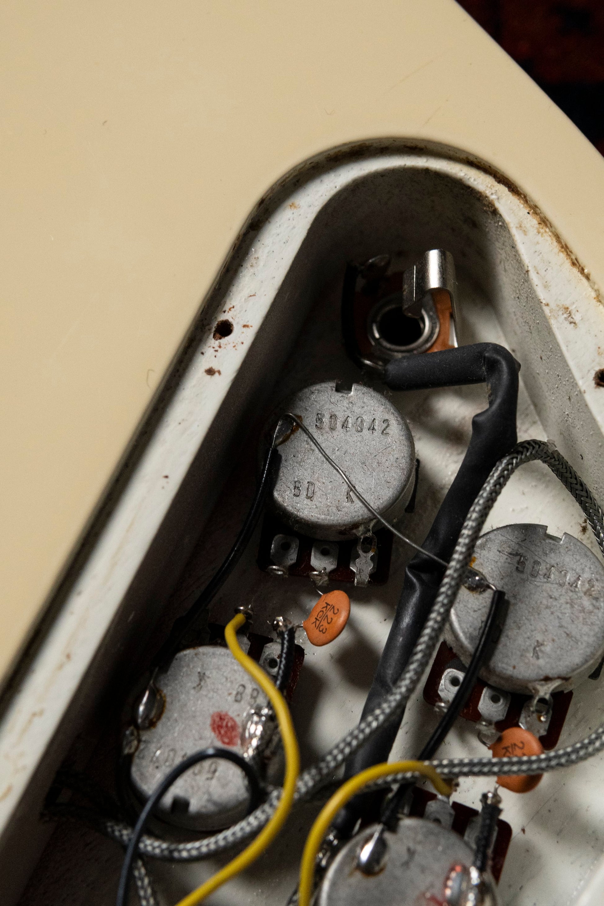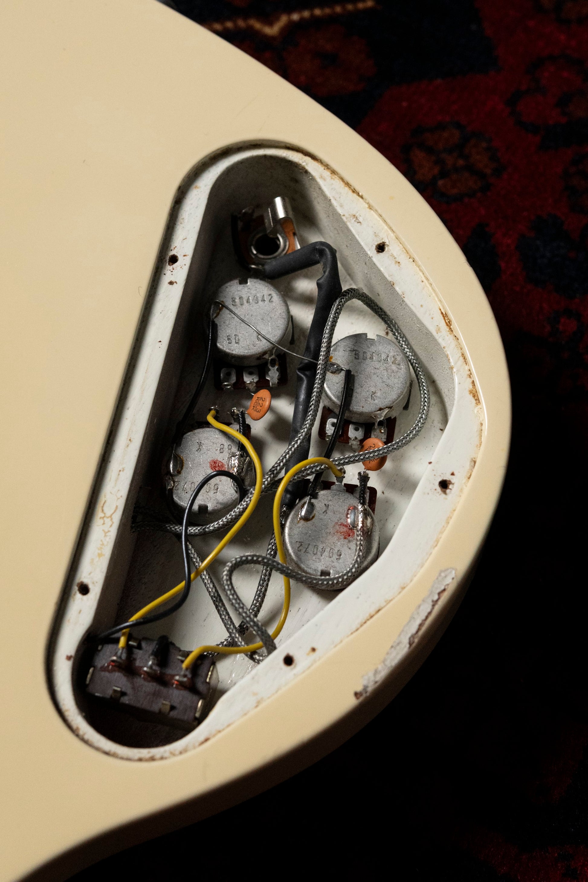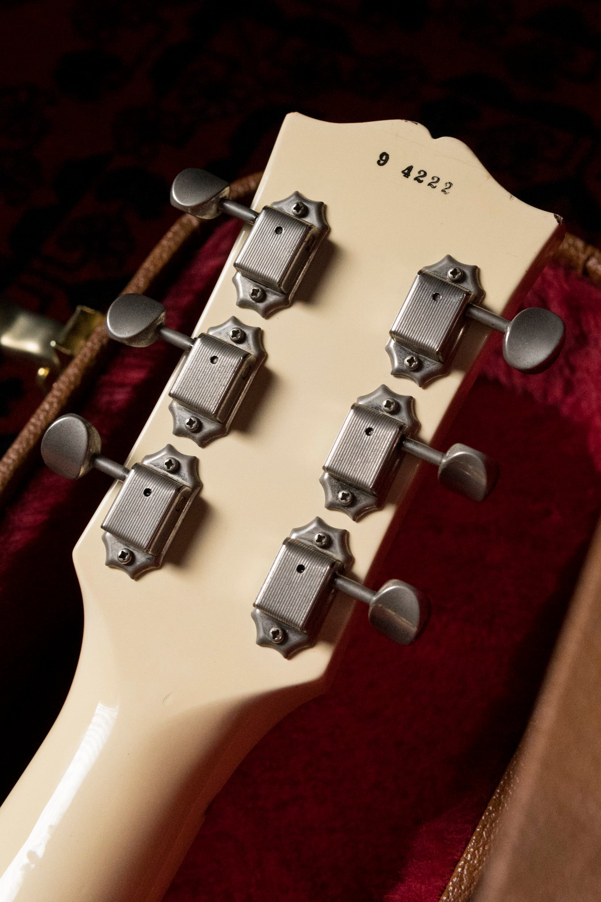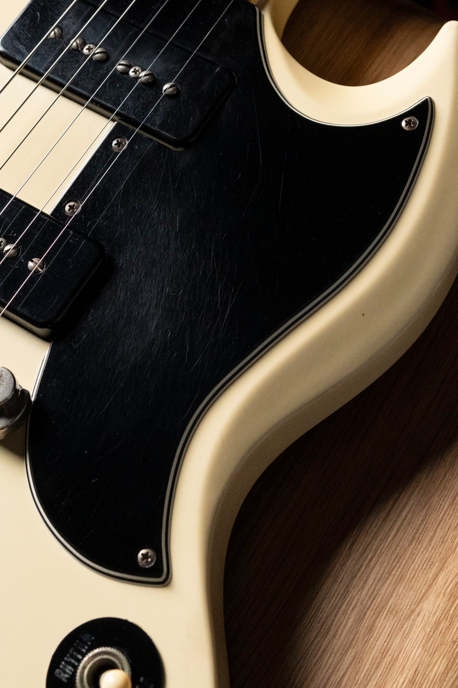 1989 Greco SS63-60S SG Special reissue in White (WH) finish. Manufactured at the FujiGen factory in Japan. Original pots are dated 1988; "9" serial prefix denotes 1989 production.