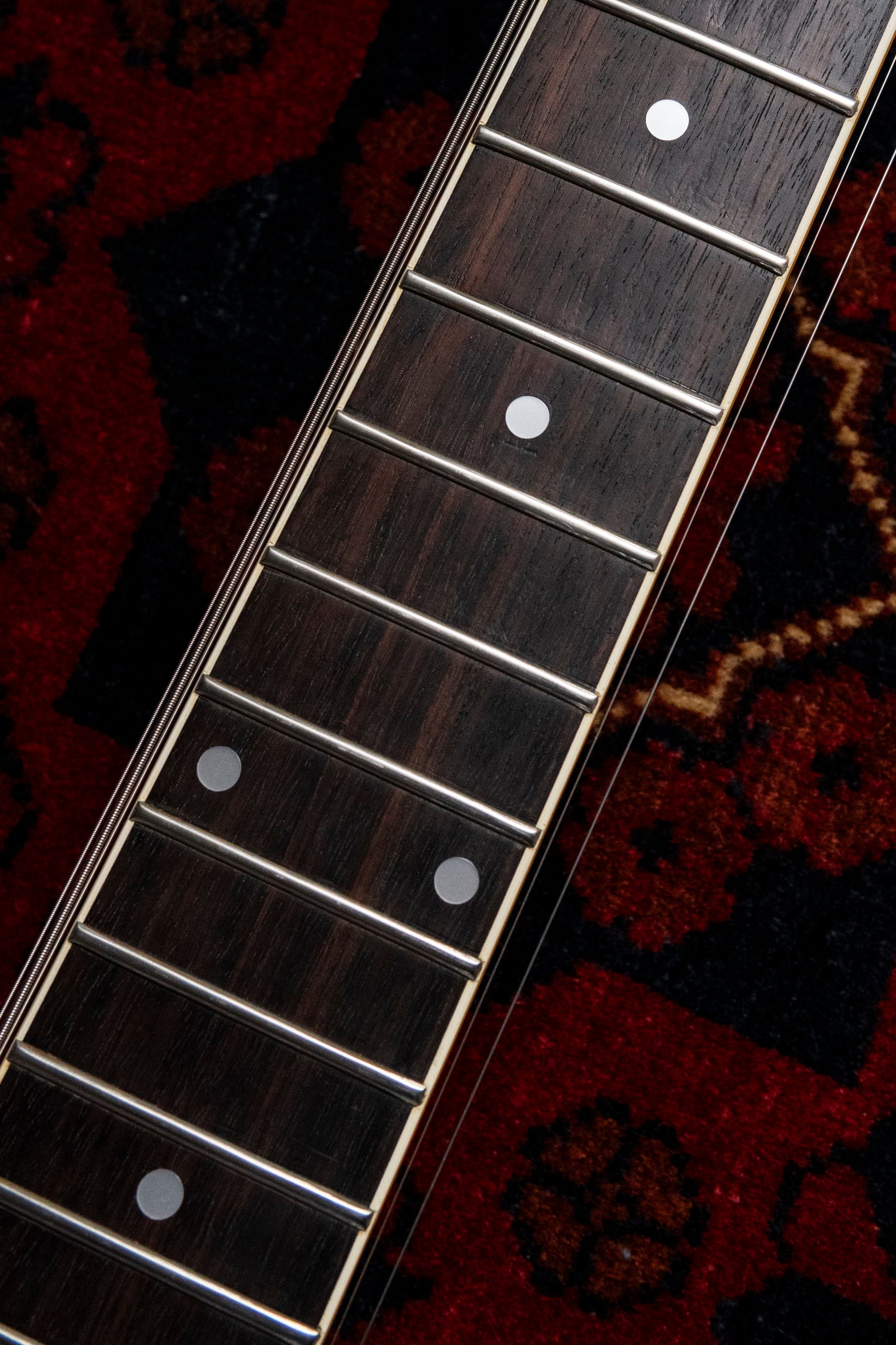 Set up with D'Addario 10-46 strings, playing well up and down the neck with proper intonation.