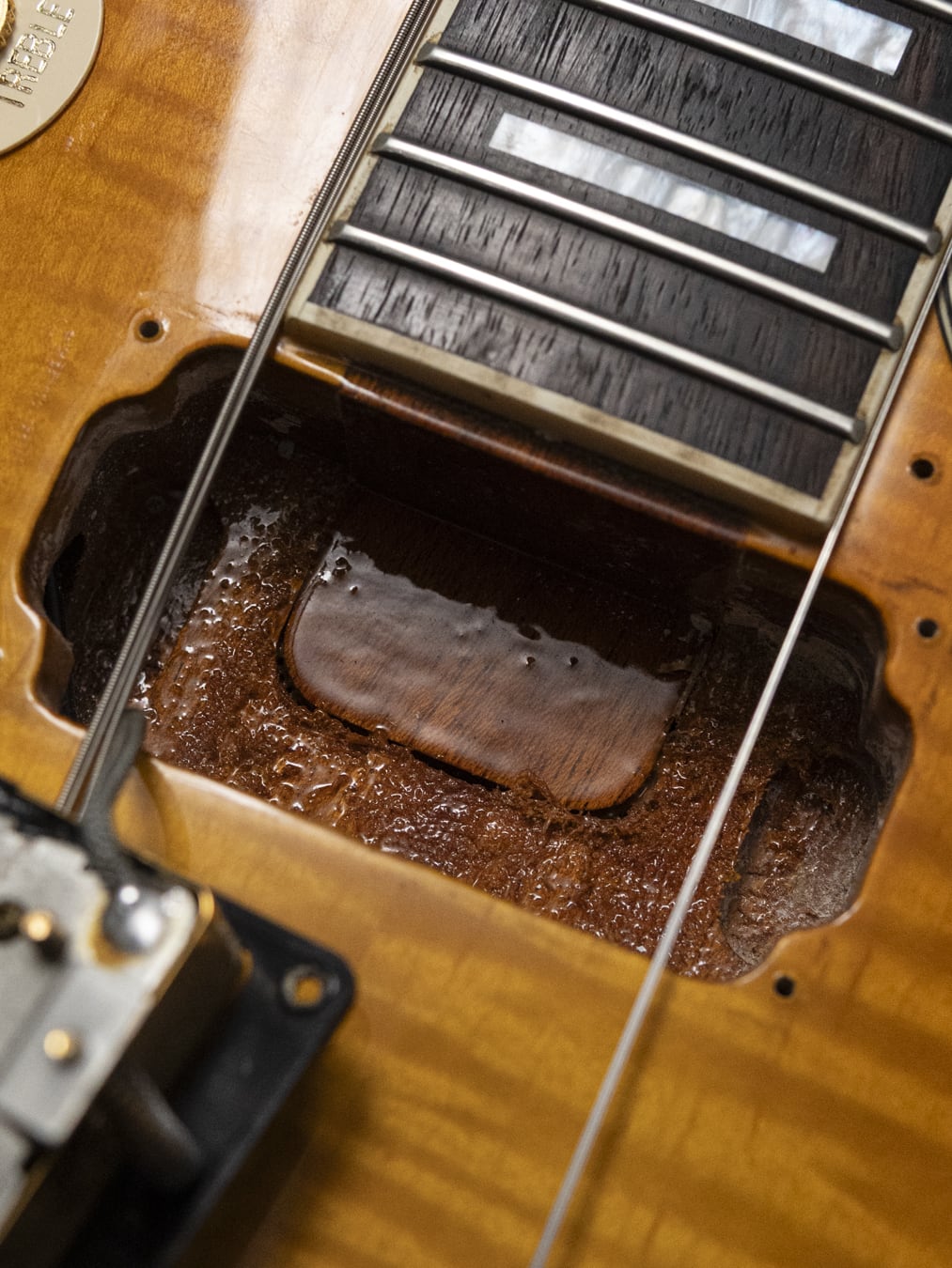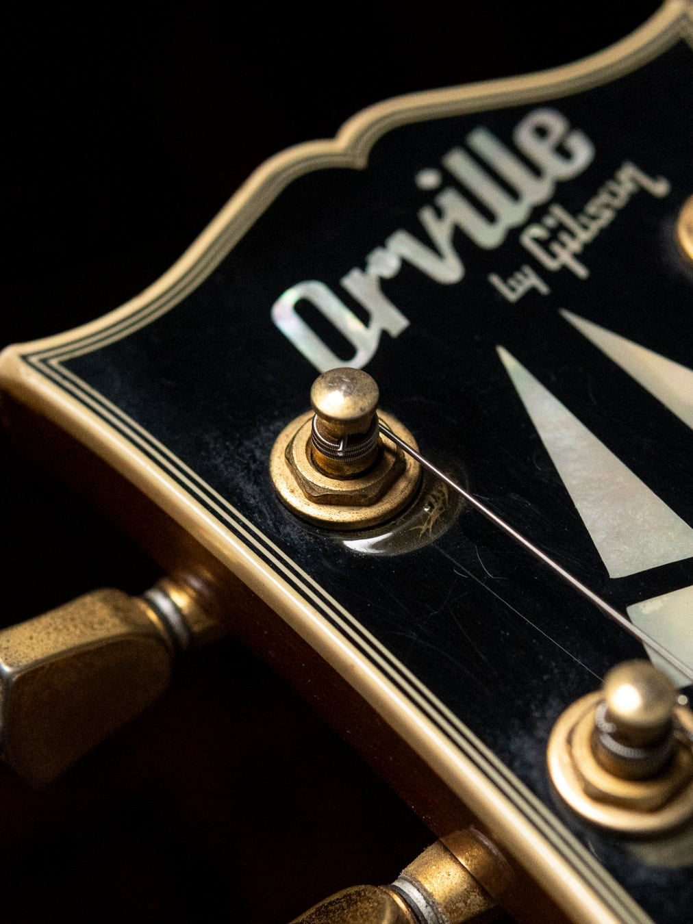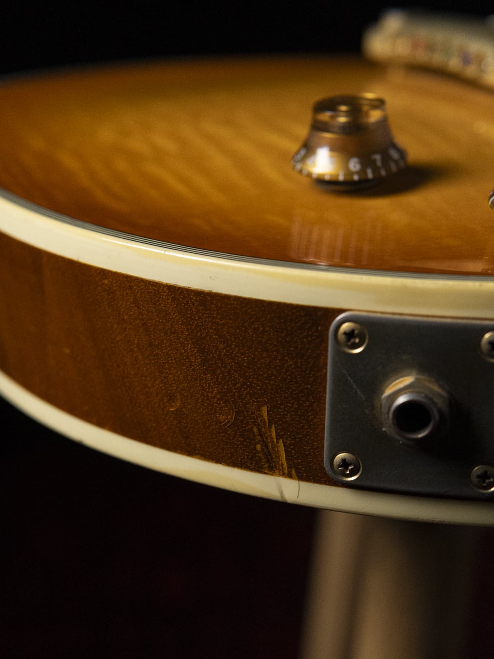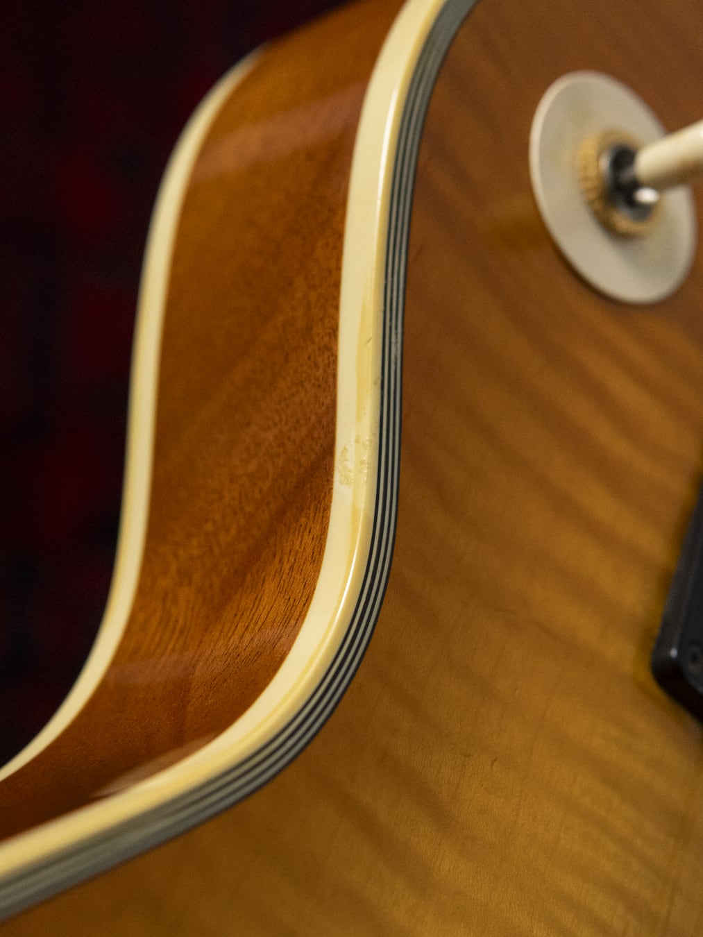 1992 Orville by Gibson LPC-FM Les Paul Custom Flamed Maple in Lemon Drop (LD) finish. One of the rarest LPCs produced, these were a limited Yamano Order run, featuring a full flame maple cap top, non-catalog LD lacquer finish, and 50's style knobs and toggle switch plate. Only a handful of examples have popped up over the past decade—this being the only one finished in LD.