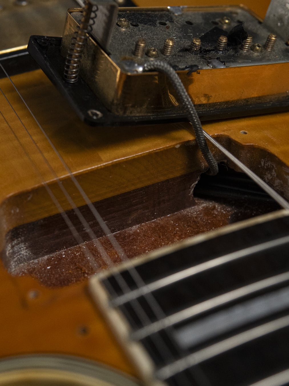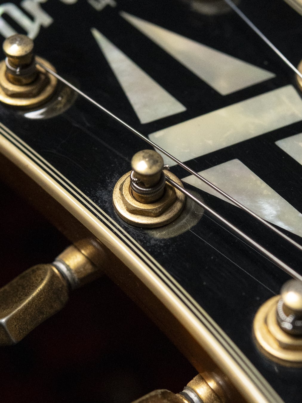 Set up with D'Addario 10-46 strings, playing up and down the neck with proper intonation.